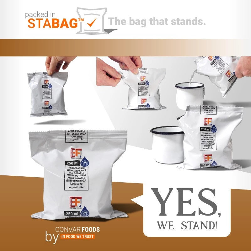 Ingredienser: Drikkevand i tætte poser. 24 poser m/hver 250 ml.